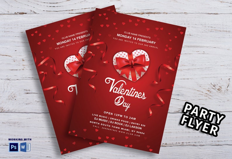 Valentine S Day Party Flyer Valentines Day Party Invitation Template Ms Word Photoshop Template Instant Download