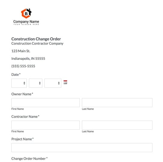 Construction Change Order Form Template Formstack