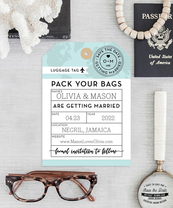 Luggage tag save the date template printable save the dates destination wedding unique save the date beach wedding editable pdf creativeuniondesign. Favorite add to more colors luggage tag save the. Since its summer and were dreaming of a fabulous far off vacation today were making the most darling luggage tag style save the dates for your destination wedding.
