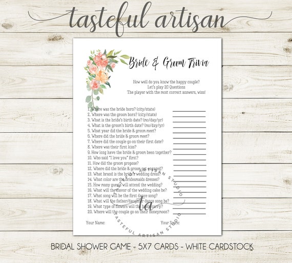Bride Amp Groom Trivia Wedding Shower Game Bachelorette Party Game 15 Questions Instant Download