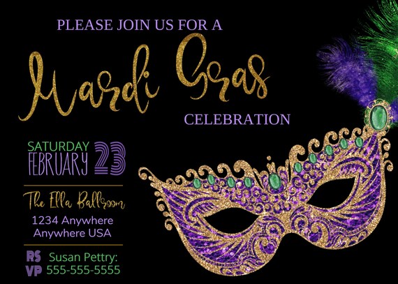 Mardi gras invitation template. Or choose a ready to go mardi gras themed invitation and personalize it with a custom host message. 5 out of 5 stars 1137 1137 reviews. Whichever theme you want to emphasize for your mardi gras celebration you will find the perfect invitation below.