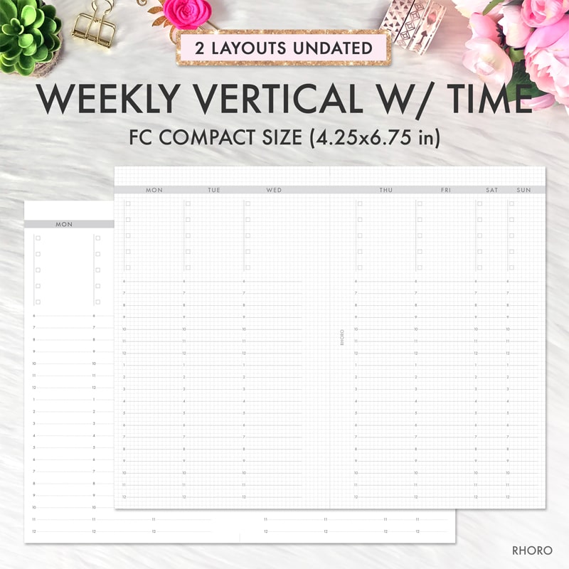 Franklin Covey Compact Inserts Printable Weekly Vertical On 2 Pages Undated Grid Hourly Time Franklin Covey Refill Printable Fc Compact