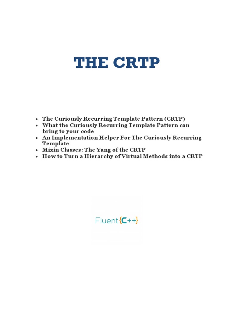Viewed 905 times 3 begingroup im implementing curiously recurring template patterncrtp in java as follows. We often find definitions of what crtp is and it is indeed an intriguing construct. But at the same time learning it may seem a bit weird at first.