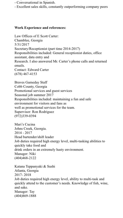 Make A Resume For A Liquor Sales Rep Based On The Chegg Com