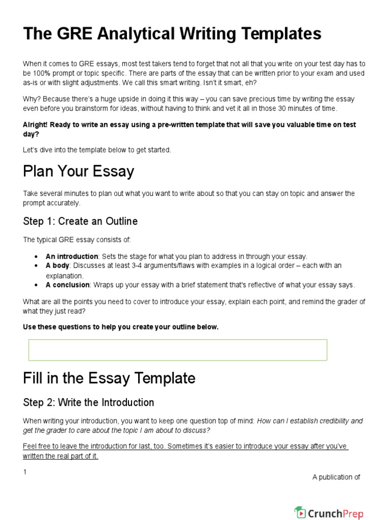 The gre analytical writing templates when it comes to gre essays most test takers tend to forget that not all that you write on your test day has to be 100 prompt or topic specific.