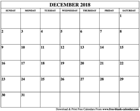 Blank December 2018 Calendar To Print