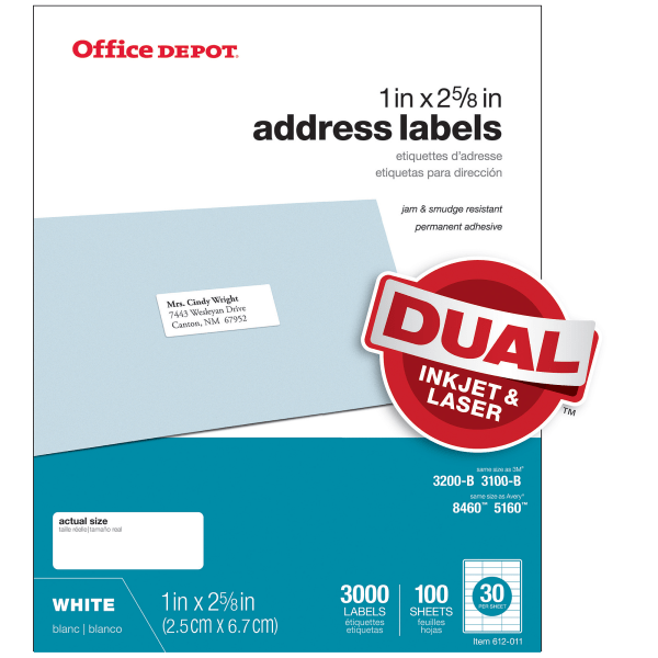 Office Depot Inkjet Laser Address Labels 1 X 2 5 8 White 3 000 Box