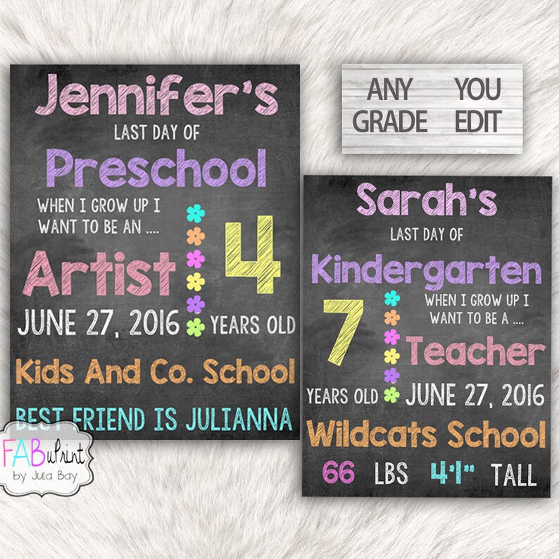 I love the way this first day of school printable chalkboard sign came out in their back to school photos and it will be a nice reminder of their favorite hobbies colors and dreams as they get older. Edit your first day of school signs template using a free online editing tool canva. Lined paper fill in the blank sign.
