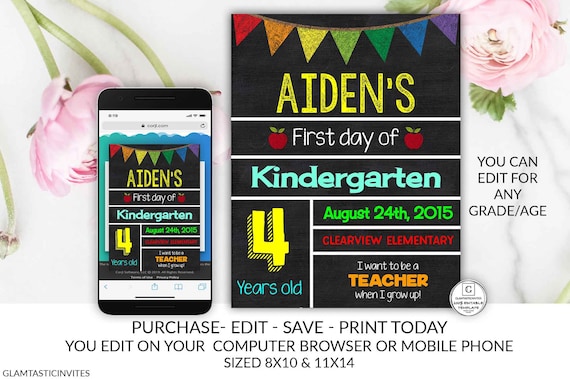 First Day Of School Sign Back To School School Chalkboard Template First Day Of Kindergarten Sign Any Age Any Grade Instant Download