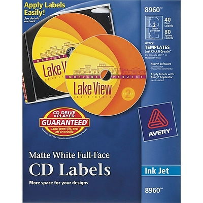 Avery Inkjet Media Labels White Matte 40 Disc And 80 Spine Labels Pack 8960