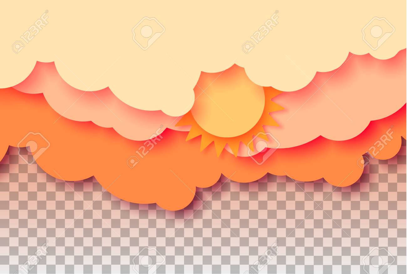 3d Abstract Paper Cut Illustration Of Pastel Orange Sky Sun