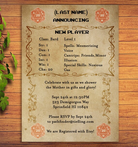 D Amp D Inspired Unisex Baby Shower Invitation Template Digital Customizable