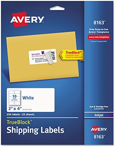 Avery 8163 Trueblock Shipping Labels Inkjet 2 X 4 White 250 Pack