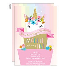 Watercolor Floral Unicorn With Gold Glitter Custom Amp Personalized Birthday Party Invitation
