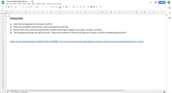 The meal plan template google docs allows you to plan out your meal h for the entire week taking in to consideration the hectic program which you may possess at function college perform or university. Earlier this week i shared how i use google sheets to organize my grocery list and heres another reason why i use it. Meals this week monday chili tuesday leftover chili from last nightu000b wednesday crock bbq chicken with green beans ahg meetingu000b thursday zesty tilapia with mushrooms friday leftovers.