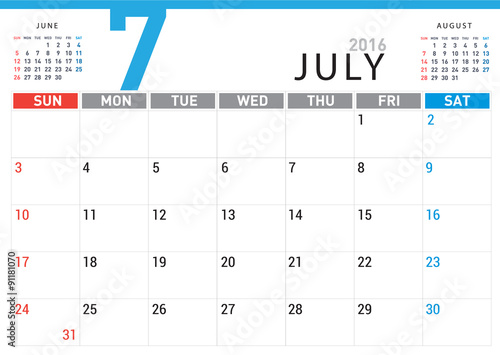 Planning Calendar Simple Template July 2016 Buy This Stock