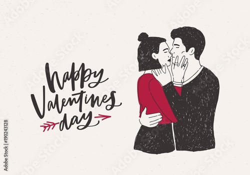 Greeting Card Template With Pair Of Hugging And Kissing