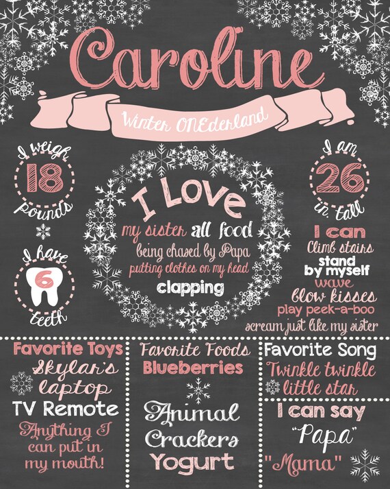 First Birthday Chalkboard Printable Poster Winter Onederland Theme Baby Girl Or Baby Boy 1st Birthday Pdf Or Jpeg Wwb1