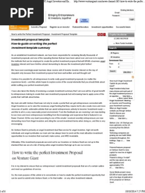 May it be a real estate proposal sales proposal loan proposal marketing proposal start up proposal or business proposal investors will not waste even a single penny on incompetent businesses or companiesin order for the angel investors to invest in your company or business you need to have a persuasive and professional investment proposal. Startups seeking angel or seed investing need to understand the provisions of an angel term sheet before they sign ie investment structure. An investment proposal template by a company called media deals is attached below.