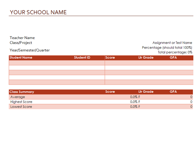 A gradebook template is a document which explains about the performance and progress of a student throughout the year.