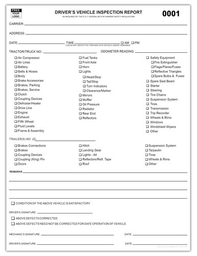 Detailed Driver Vehicle Inspection Report 3 Ply Carbonless