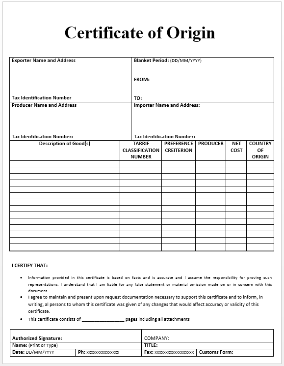 Shipperexporter name and address including zip code. It is formally typed and available in some of certificate of origin template. The above diagram shows a template of certificate origin.